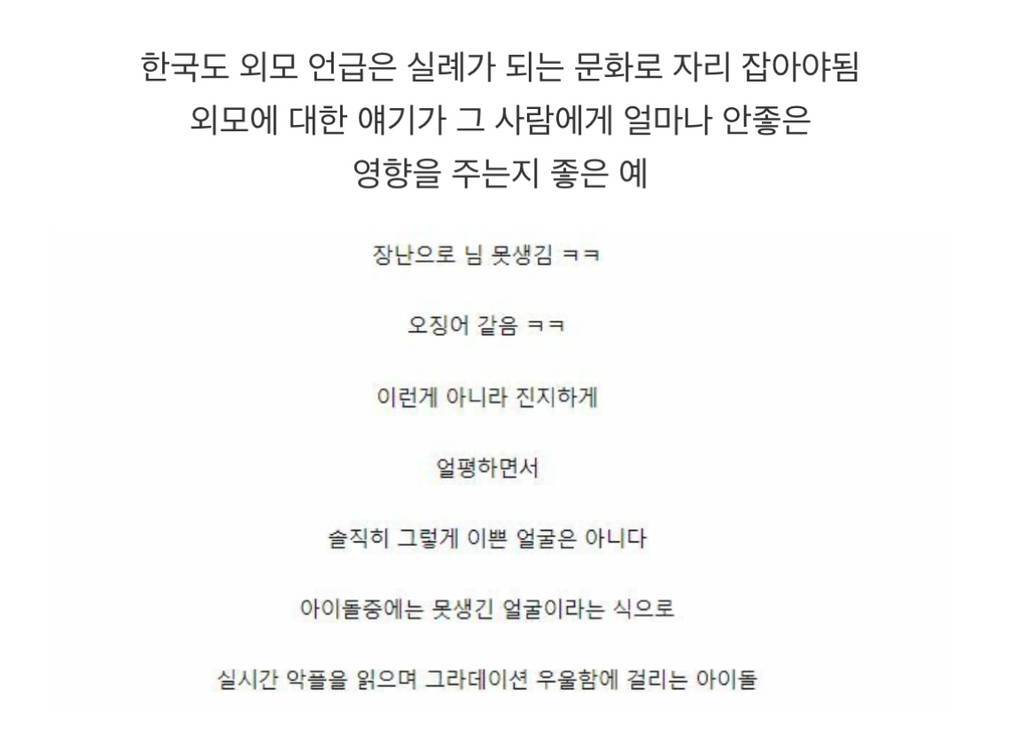 심지어 일반인 마저 베댓을 보면 대부분이 외모평가