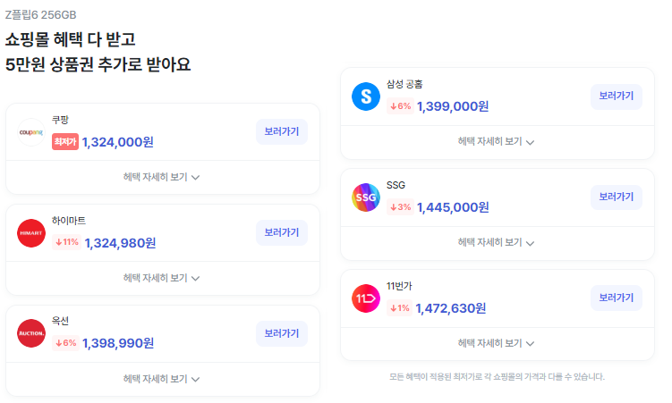 모요에서 갤럭시 Z6 폴더블를 최저가에 구매하고 구매지원금 받아가세요.