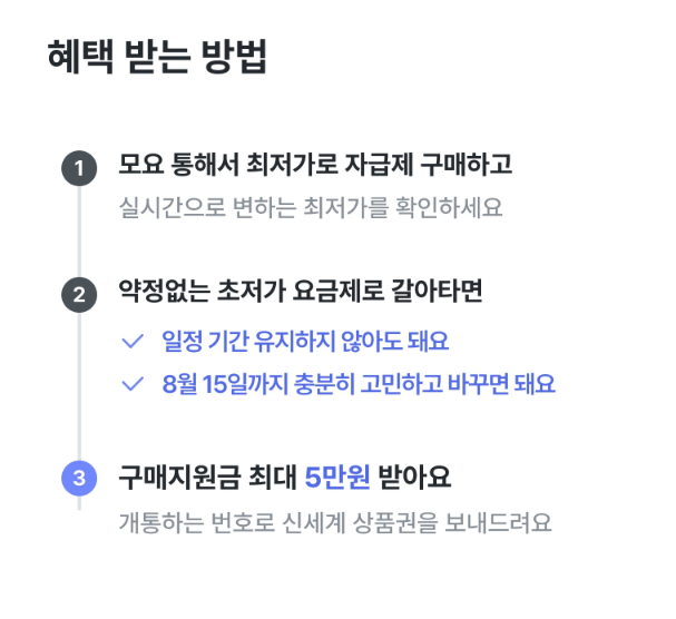 3.구매지원금 최대 5만원 신세계 상품권으로 받기!