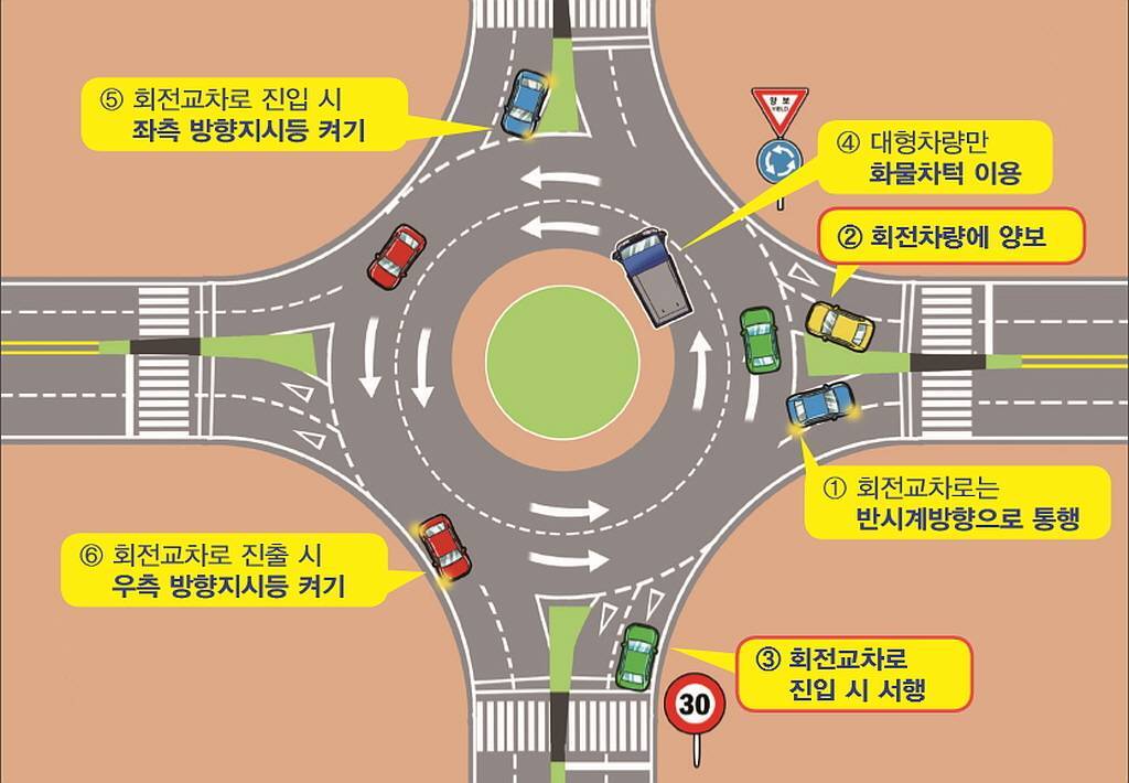 회전차량 우선이고 차선변경시 깜빡이 켜야함