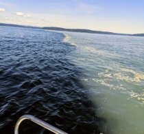 Q : 바다가 두 가지 색으로 나뉘어있어. 왜 이래?