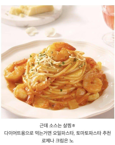 파스타 칼로리를 낮추려면 미트소스(라구 소스) 파스타나 생크림 달걀 등이 들어간 크림파스타가 아닌 오일 파스타를 선택하는 것이 좋다.